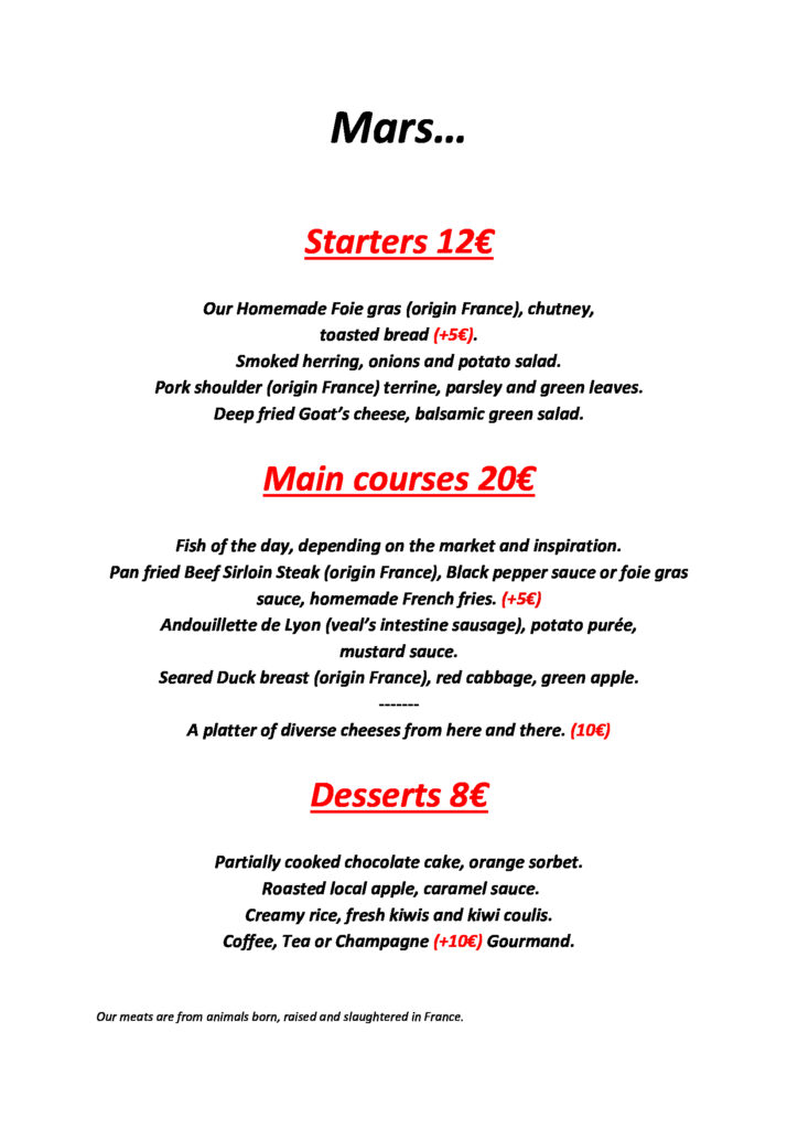 English Menu